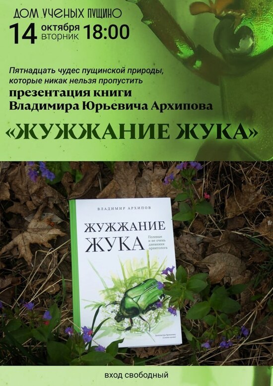 Книга «Жужжание жука» - очерки Владимира Архипова, биолога, орнитолога, старшего научного сотрудника Института теоретической и экспериментальной биофизики РАН.