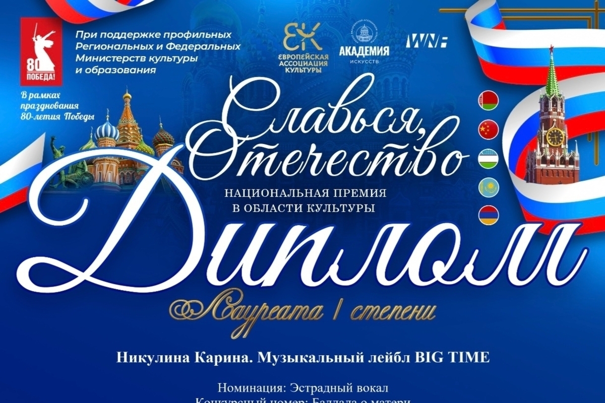 Также эту балладу оценили в другом проекте — Международном патриотическом конкурс фестивале в рамках государственного празднования 80 летия Победы в Великой Отечественной войне «Спасибо, что с Отчизной были рядом». В нём Карину также высоко оценили и наградили дипломом лауреата I степени.