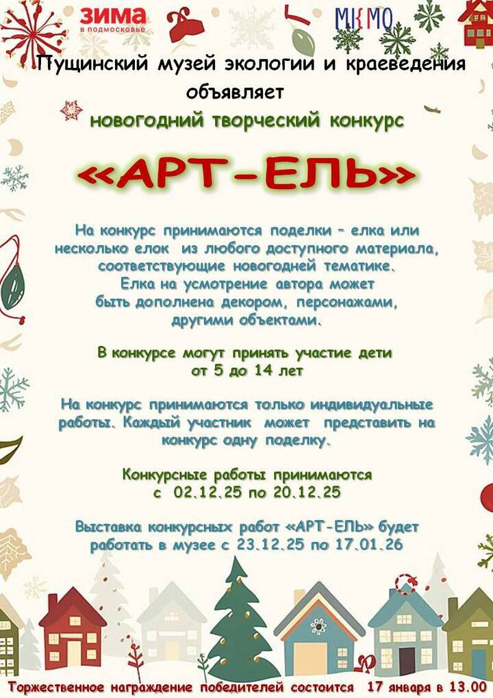 Юных жителей приглашают стать участниками творческого конкурса «АРТ-ЕЛЬ», который проводит пущинский музей экологии и краеведения.