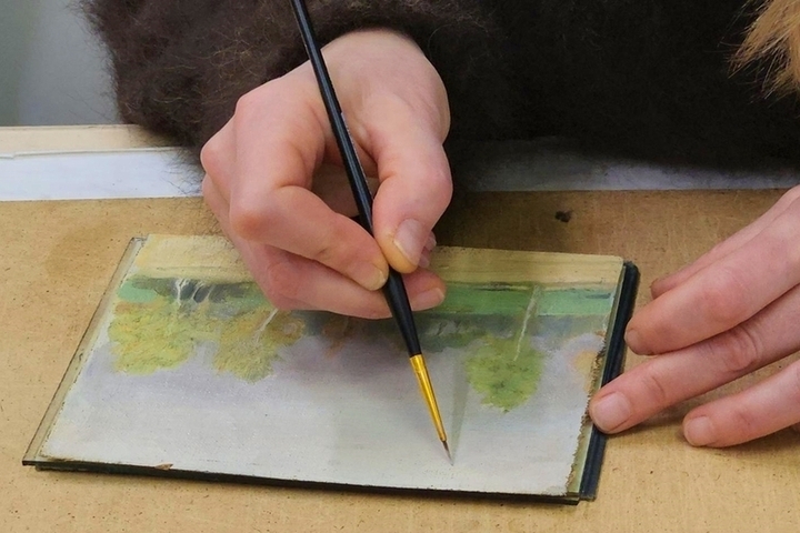 Реставрационные мероприятия, которые проводит художник-реставратор первой категории Елена Баранова, включают укрепление красочного слоя, удаление загрязнений и тоновую сборку композиции.
