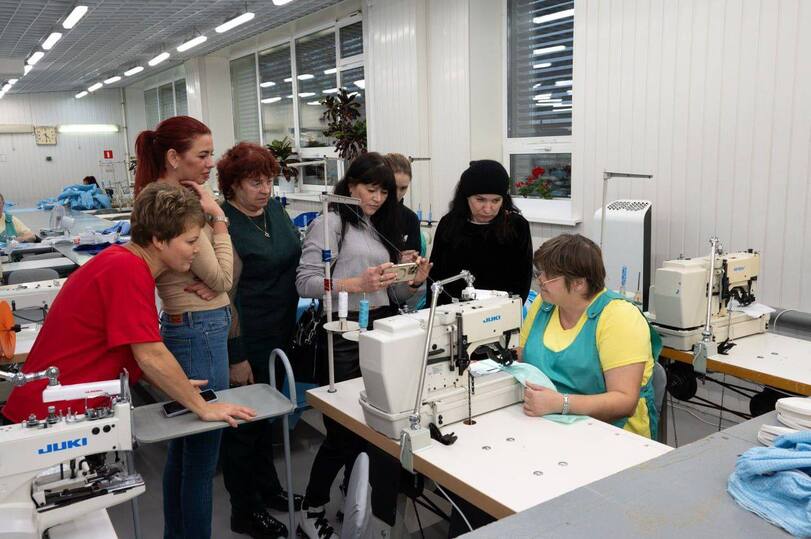 Экскурсантам показали полный цикл создания спецодежды, включая швейные цеха и склад готовой продукции. Особое внимание уделили гуманитарной миссии предприятия — регулярным поставкам своей продукции на передовую.
