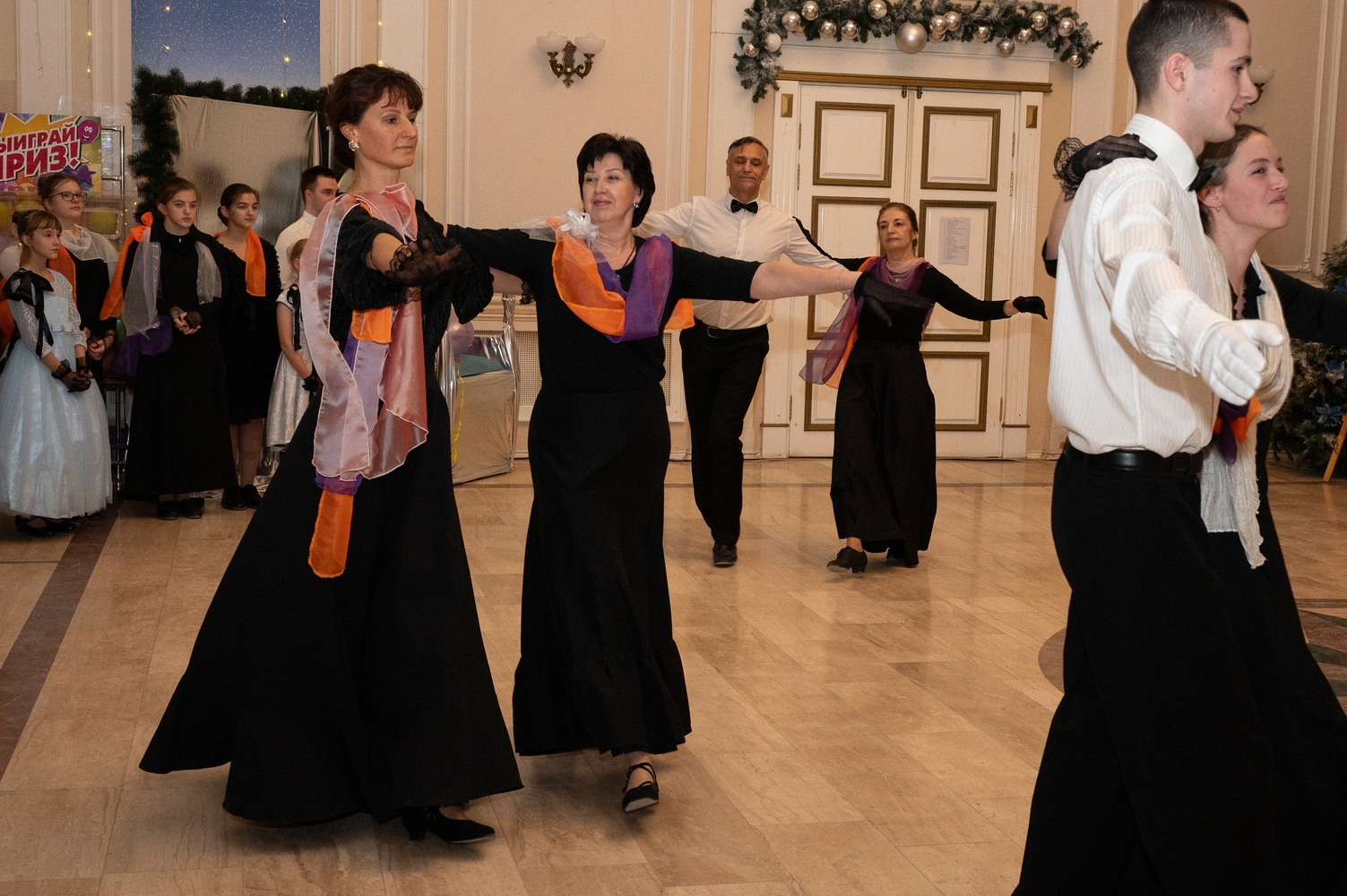 Гости вечера увидели программу, составленную из знаковых танцев разных эпох. В исполнении участников клуба были представлены придворные павана и менуэт, а также стремительные вальсы и грациозные мазурки, составляющие золотой фонд бальной культуры XVIII-XIX веков.