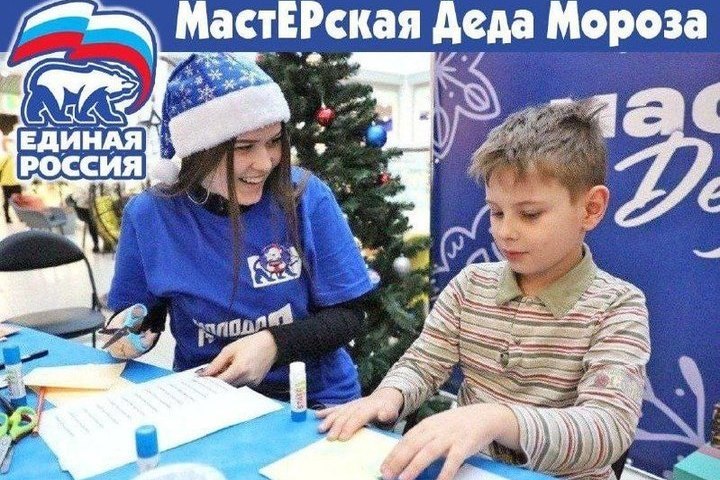 «МастЕРская Деда Мороза» партии «Единая Россия» будет открыта с 11 до 18 часов, чтобы каждый ребенок смог найти время и посетить. Волшебная атмосфера праздника и творчества ожидает каждого.