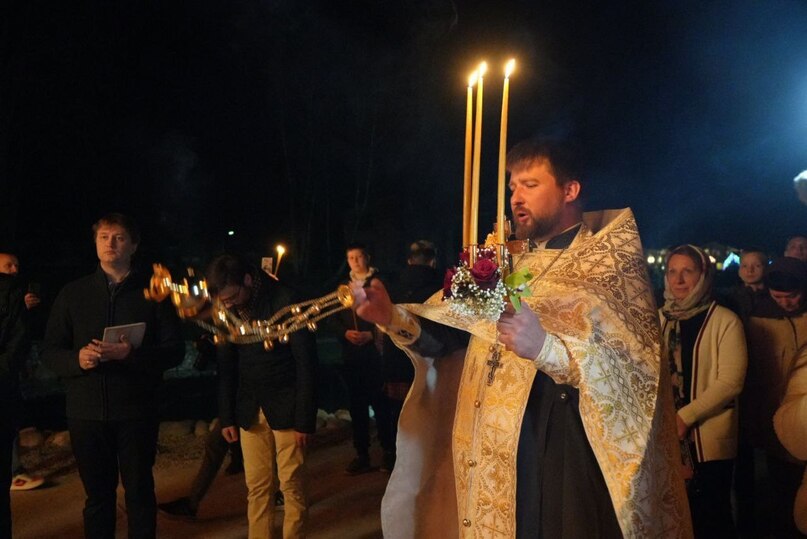 Ровно в полночь начался традиционный Крестный ход. С иконами и пением молебного канона верующие обошли храм, завершив шествие праздничной Литургией.