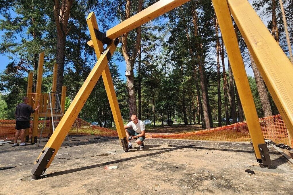 Все конструкции на новой эко-площадке изготовлены исключительно из натуральных материалов – лиственницы и металла, без применения пластика. Новый объект гармонично вписывается в окружающий лесной пейзаж. Для безопасности детей на площадке установят ограждения.