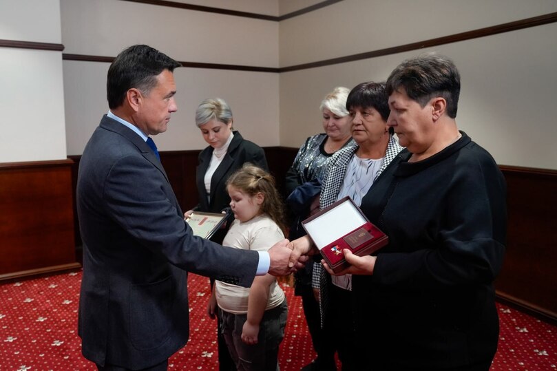 В зале во время церемонии награждения присутствовали самые близкие люди героя: жена Александра, дочь Оля, мама Наталья Викторовна, а также его боевые товарищи. Алексей Стрижак ушел на фронт добровольцем в начале 2024 года и служил разведчиком-снайпером в группе специального назначения. Родные и близкие Алексея вспоминают его как самоотверженного, доброго и честного человека, который всегда был готов оказать помощь и поддержку тем, кто рядом.Фото пресс-службы Губернатора МО