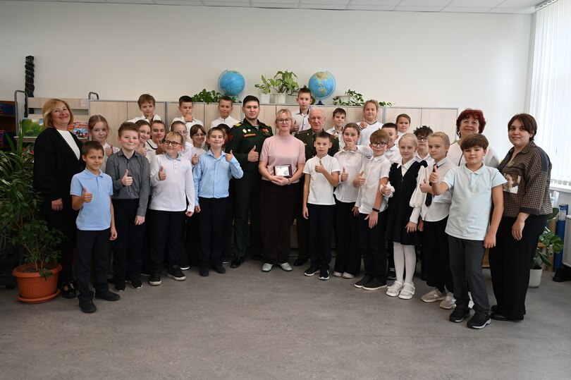 Во время урока Татьяну Григорьевну посетили Лидия Халачева - руководитель Единого центра поддержки участников СВО и членов их семей, подполковник Владимир Курилов - председатель Комитета ветеранов войны и военной службы и ветеран боевых действий Александр Худобкин - заместитель руководителя Ассоциации ветеранов СВО. За свою плодотворную деятельность Татьяна Ким была удостоена почетной медали.
