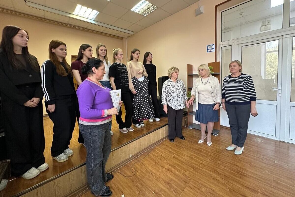 Председатель Серпуховской территориальной организации Общероссийского Профсоюза работников госучреждений и общественного обслуживания РФ Галина Петровна Улитина лично поблагодарила директора колледжа Татьяну Викторовну Федорову и выразила благодарность художественному руководителю коллектива педагогу по дополнительному образованию Жанне Викторовне Брыкиной.