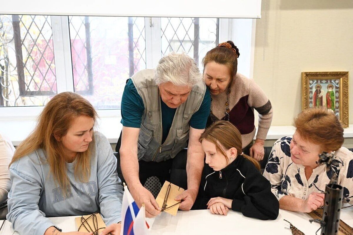 Участники освоили технику плетения многофункционального снаряжения, известного как "браслеты жизни", которое может применяться в полевых условиях. На занятии присутствовали дети защитников Отечества, для которых это стало практическим уроком милосердия и помощи делом.
