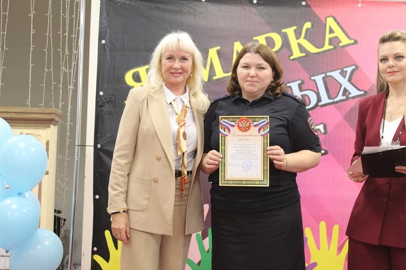 Директор Центра по профориентации и трудоустройству молодежи Надежда Ерёмина вручила сотруднику полиции Благодарственное письмо за активную работу по профессиональной ориентации подрастающего поколения.