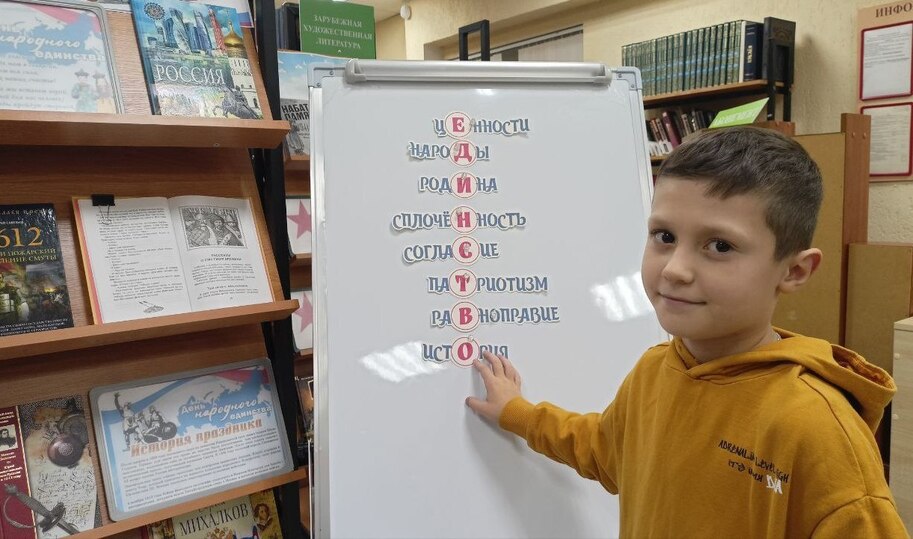 В рамках мероприятия библиотекари вместе с посетителями попытались найти ответы на важные вопросы: что означает название праздника, почему возникла необходимость в его возрождении, какие события послужили основой для народного единства, а также - в чём и с кем нам необходимо объединиться сегодня?