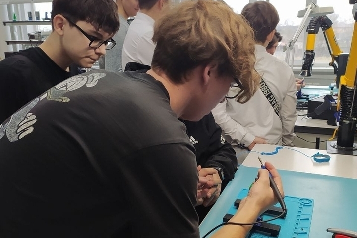 Школьники под руководством преподавателей и амбассадоров специальности «Монтаж, техническое обслуживание и ремонт электронных приборов и устройств» попробовали себя в профессиональных пробах и получили представление о том, что изучают, чем занимаются студенты, обучающиеся по программе подготовки «Специалист по электронным приборам и устройствам».