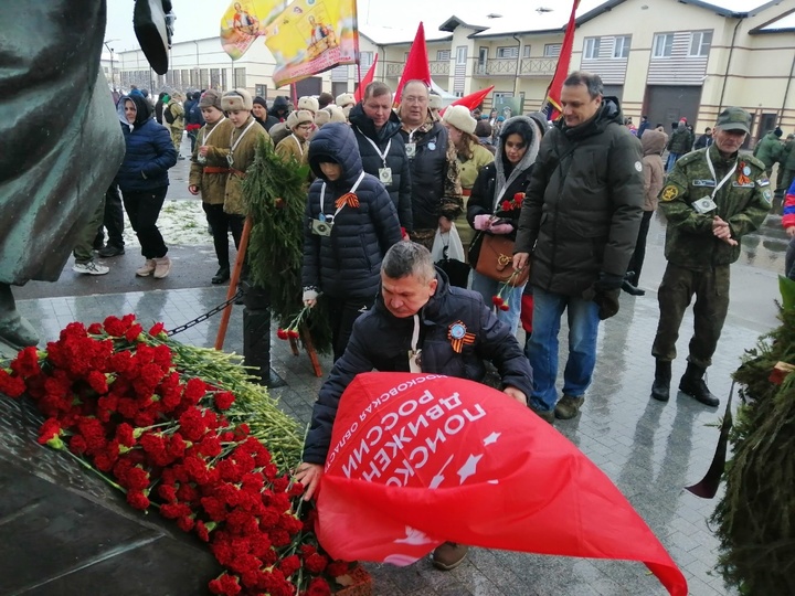 Почетные гости почтили минутой молчания память павших в Великой Отечественной войне, а также возложили венки и цветы к монументу.