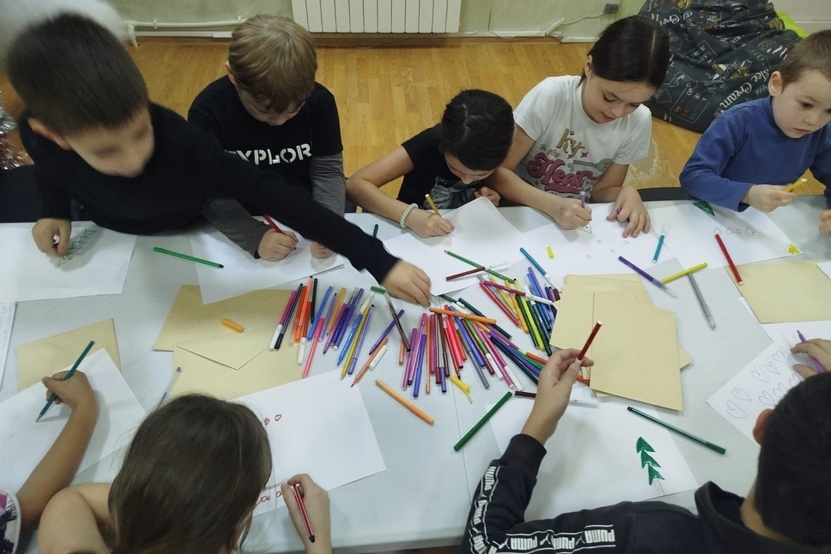 Дети танцевали, пели песни, веселились, рисовали рисунки и писали пожелания для дедушки, которые потом опускали в волшебный ящик.