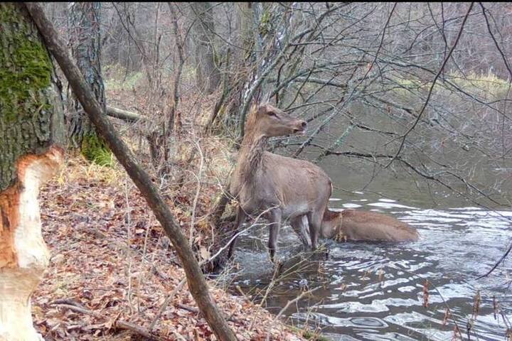 Фотоловушка, установленная для наблюдения за природой в Приокско-Террасном заповеднике, запечатлела забавный и по-своему мудрый манёвр семьи благородных оленей.