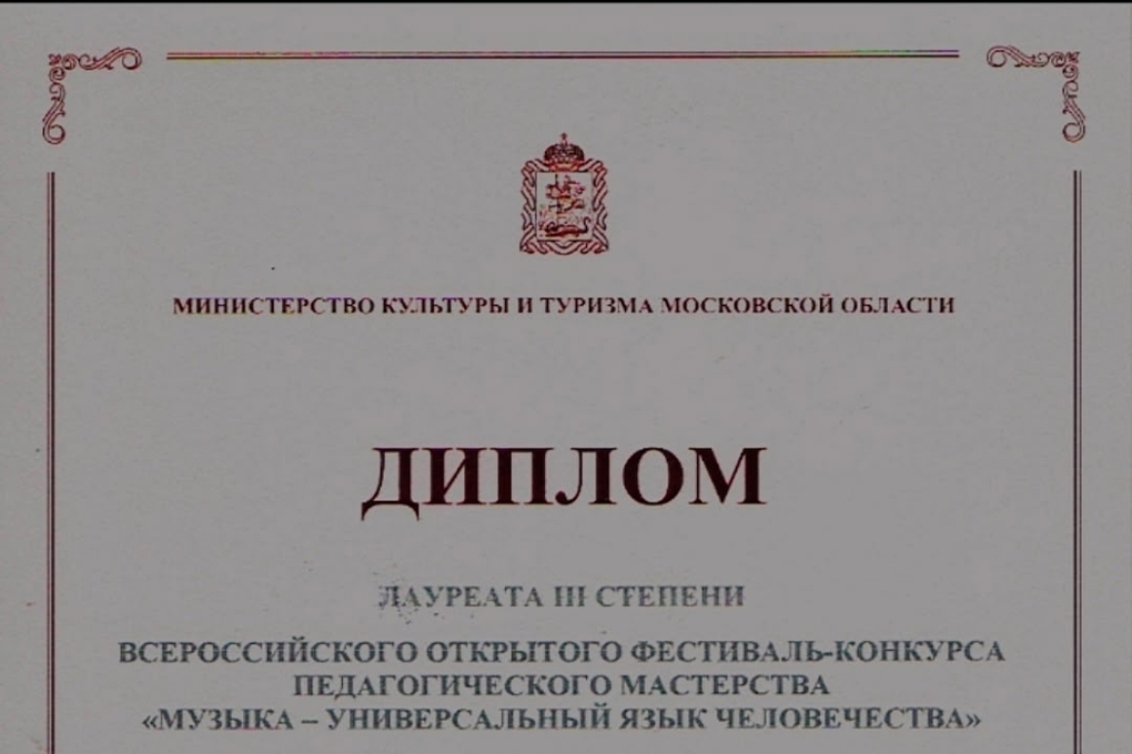 Всероссийский конкурс педагогического мастерства «Музыка - универсальный язык человечества» завершился научно-методической конференцией в Центральном Доме работников искусств в Москве. В течение шести месяцев жюри конкурса отбирало лучшие работы педагогов по разным категориям и номинациям. В числе награжденных – специалист из Городского округа Серпухов.