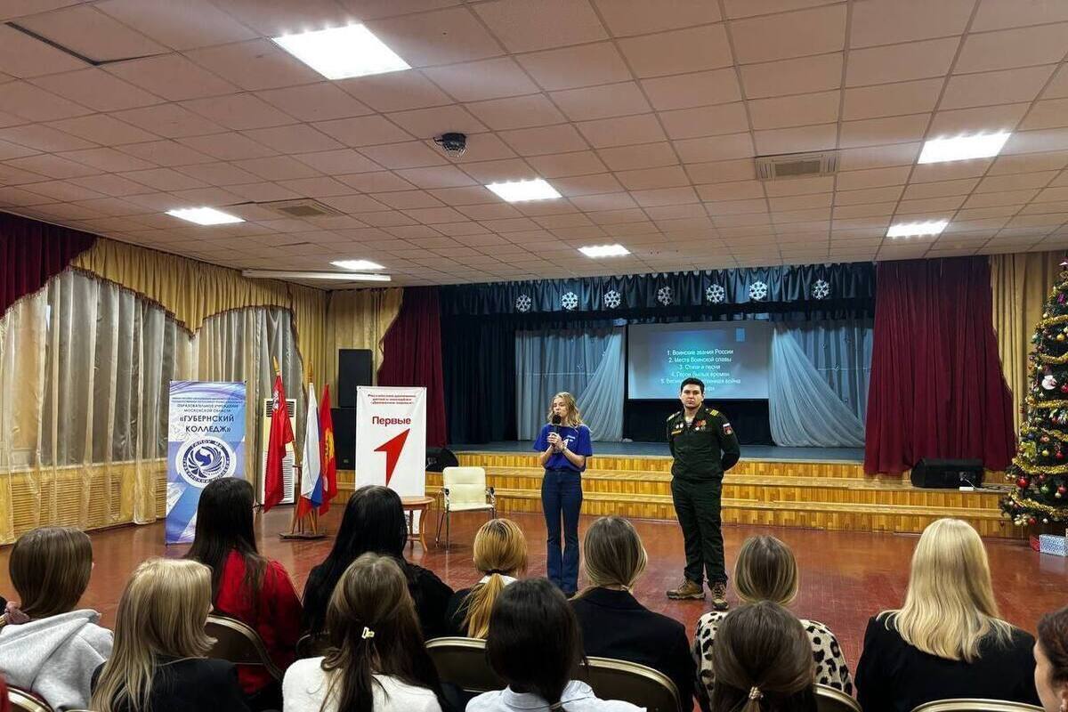 В Губернском колледже состоялось яркое патриотическое событие — проект «Наставник Z», организованный «Молодой Гвардией» Единой России. Мероприятие объединило живой разговор с настоящим героем и интеллектуальное состязание, зарядив студентов энергией, знаниями и гордостью.