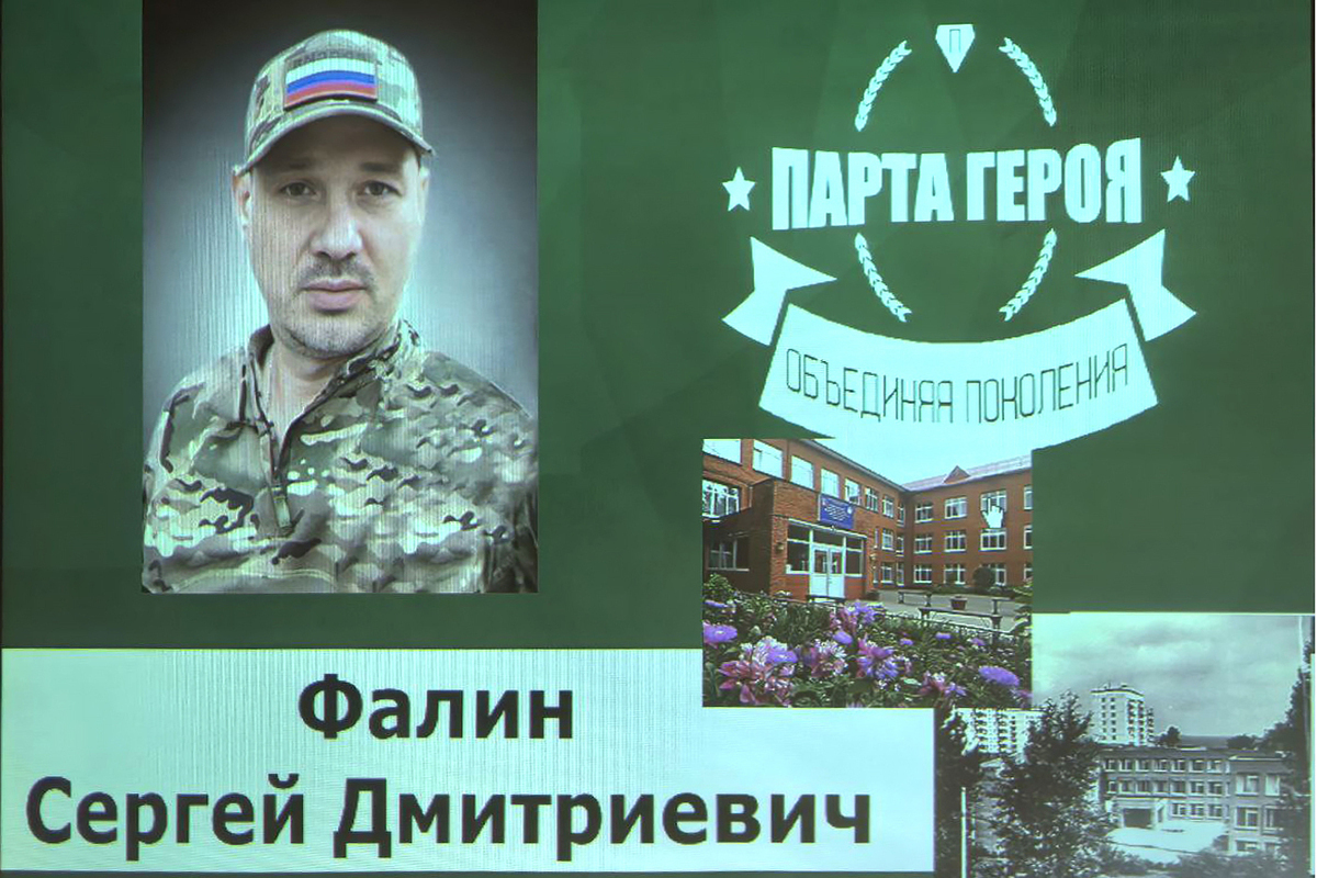 Сергей Фалин учился в этой школе, после ее окончания трудился в родном городе. Его мобилизовали в октябре 2022 года. Свой путь он прошел от рядового до сержанта, командира отделения противотанковых управляемых ракет. В одном из боев Сергей был ранен, но после госпиталя вернулся к своим товарищам на передовую. Погиб 26 мая 2025 года в селе Новосадовое под Кременной ЛНР.
