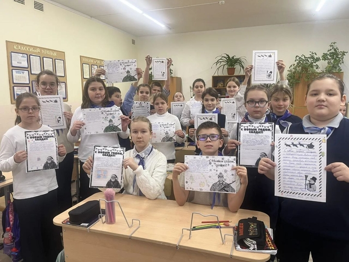 Кроме того, ученики начальных классов, участники программы «Орлята России», присоединились к общероссийской акции «Тепло из дома». Они изготовили открытки и рисунки с новогодними пожеланиями, а также написали письма военнослужащим. В своих посланиях дети благодарят защитников за мужество, делятся школьными новостями и своими мечтами.